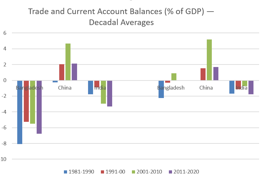 Chart 4a: Trade & Current Account Balances (% of GDP) — Decadal Averages. Source: World Bank Open Data