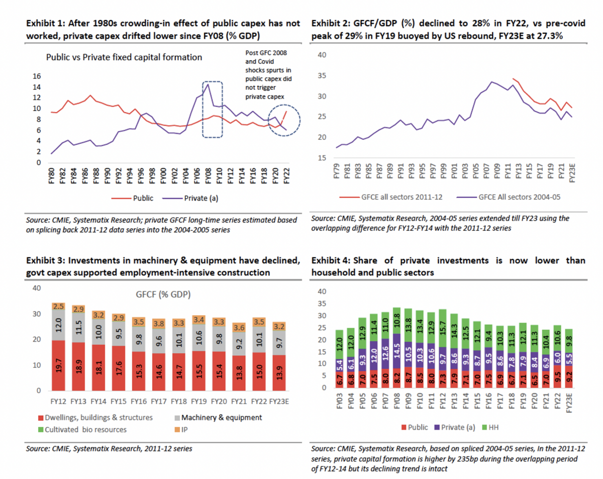 Adjudicating by the evidence shared by the Systematix team in one of their latest policy briefs, the answer would be: Not really. Quoting from their brief here: “The lack of private capex despite the policy support and conducive environment indicates that the crowding-in impact of government capital spending and tax cuts is not working.”