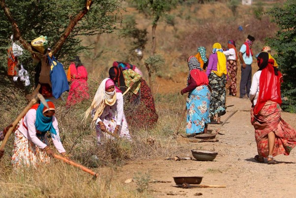 Workers employed under NREGA on the outskirts of Ajmer, working during the COVID-19 Pandemic. Photo: PTI