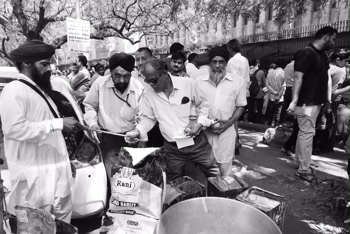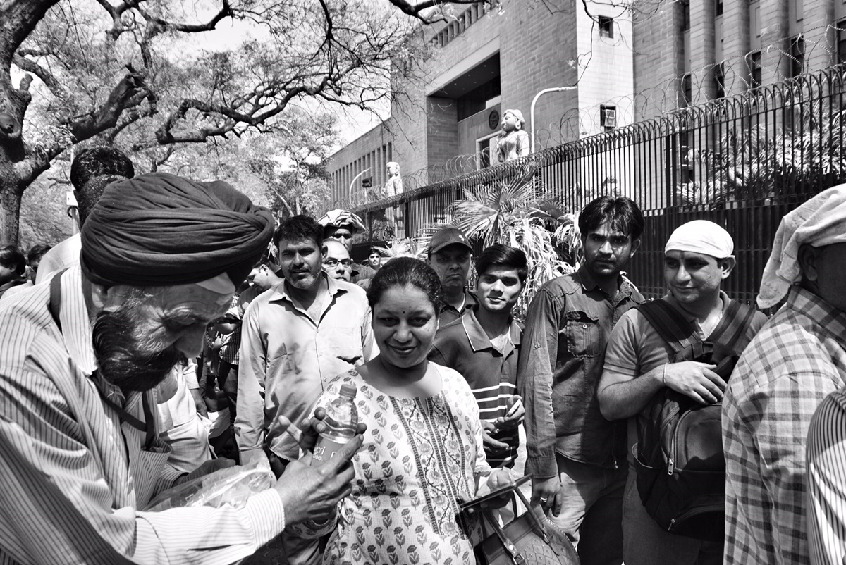 An old Sikh man from Rakhab Ganj Gurudwara provided free water at the long queues of people standing to change their notes.