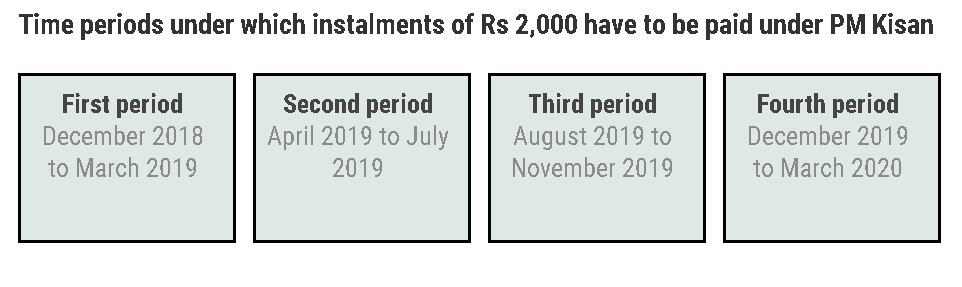 Now, for the fourth instalment, made for the December 2019-March 2020 period, Prime Minister Narendra Modi has announced the transfer of Rs 2,000 into the accounts of six crore farmers in January 2020. This came after the first three four-month periods, i.e. the first full year of PM Kisan, were over.