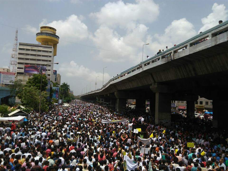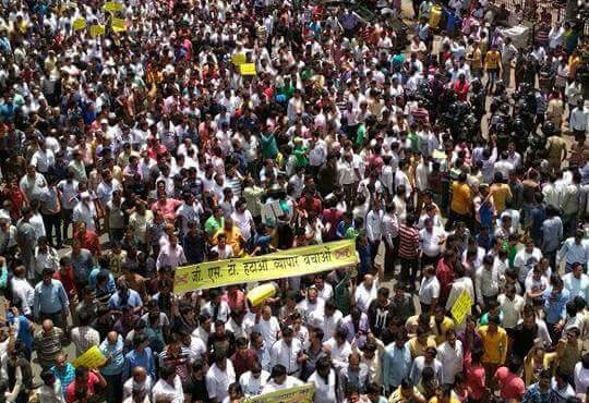 The mammoth rally, in which organisers claimed more than one lakh people participated, was organised under the leadership of Hitesh Sanklecha, a textile trader who has been on an indefinite hunger strike for the last nine days.