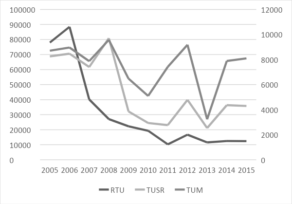 Note: RTU – Number of Registered Trade Unions; TUSR – Number of RTU Submitting Returns; TUM – Member of TUSR