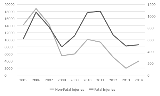 Figure 3. Industrial Injuries in Factories, 2005-2014