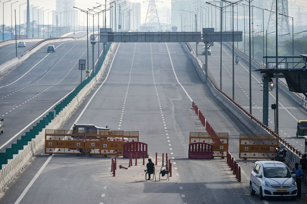 Barricades on the Delhi-Ghaziabad border after lockdown was imposed in New Delhi, March 23, 2020. Photo: PTI/Arun Sharma