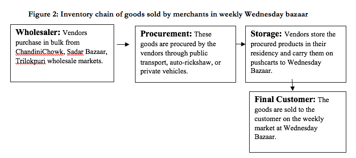 - Most merchants operating in the market are part of migrated communities from rural parts of Uttar Pradesh, who often sell their products on different days of the week across different weekly markets across Delhi. In the study report, we call them the floating vendors. Vendors selling garment products often purchase these goods from the old Delhi markets of Chandni Chowk and Chawri Bazaar, and maximise sales on a minimal profit margin.