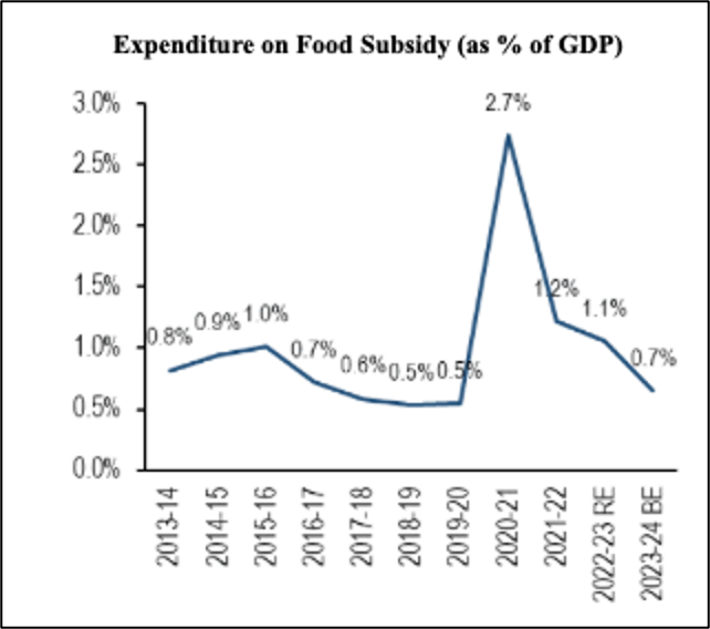 Increased subsidy costs would account for the fluctuations in the minimum support price and the distribution of free food grains under the Pradhan Mantri Garib Kalyan Anna Yojana. Indian economists suggest that the capital expenditure push of the Modi government might slow down in FY2024-25 amidst their focus towards fiscal consolidation and to bring down the fiscal deficit to 4.5% of the GDP by FY26 from the present 5.9%.