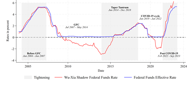 Sources: Wu–Xia Shadow Federal Funds Rate from Atlanta Federal Reserve Bank; Federal Funds Effective Rate from St. Louis Federal Reserve Bank.