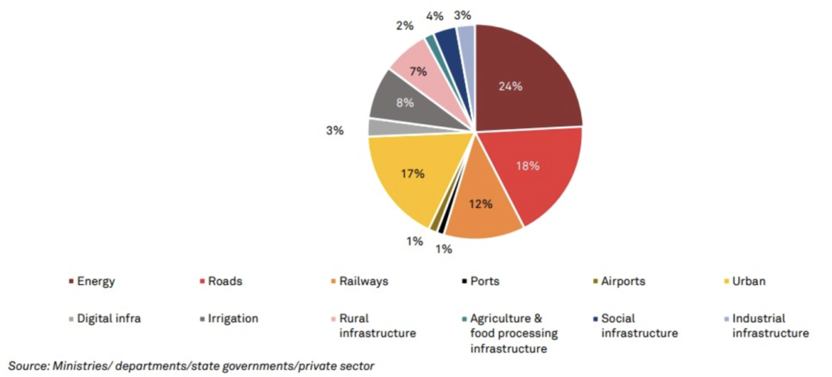 Sector-wise break-up of capital expenditure. Fiscals 2020-2025. Source: National Infrastructure Pipeline