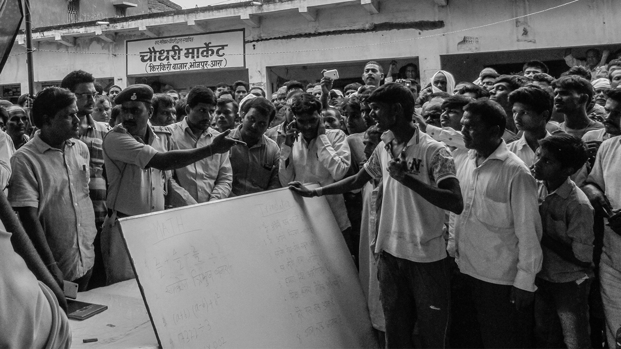 The protesters have a list of teachers' names who threatened to remove their names from schools and expel them, details of irregular payment of scholarships and of arbitrary collection of fees from students without receipts. At Chilhar school in Agiaon block, when teachers began to demand Rs 150 an Rs 200 for practicals and leaving certifications, without receipts, the students refused to pay and protested. The principal had called in the police who had lathicharged the students. The matter was again brought before the protest 'class' in Azeemabad, where the sub-inspector of Azeemabad police station, Raju Kumar, repeatedly said that there had been no violence. It was then that a student walked up to him and confronted him to resounding cries from all the other students present. The police officer was transferred to Rohtas district.