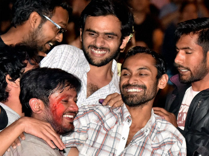 Kanhaiya Kumar, Umar Khalid and Anirban Bhattacharya. Photo: PTI