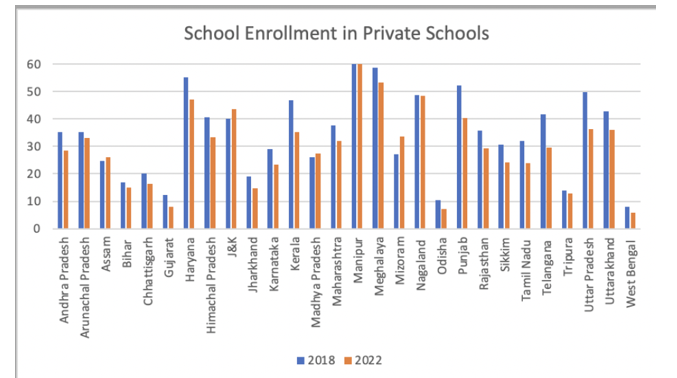 Proportion of children enrolled in private schools. Source: ASER report 2022