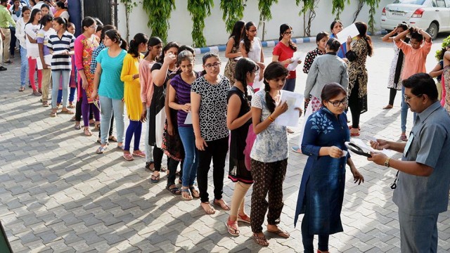 Representative image of students lining up for an entrance exam. Photo: PTI