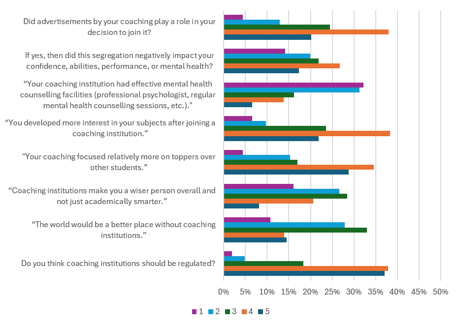 The survey reveals serious problems plaguing the coaching industry and affecting the student community. Among other observations, the three major problems that can be identified are: Information Asymmetry, Mental Health, and Dummy Schools.