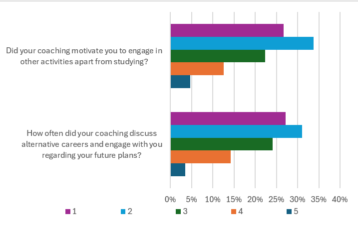 Coaching firms fail to encourage students to engage in other activities (recreational) besides studies. Sixty-seven per cent of engineering and 54 per cent of law students said never or rarely when asked whether their coaching motivated them to engage in other activities besides studies.