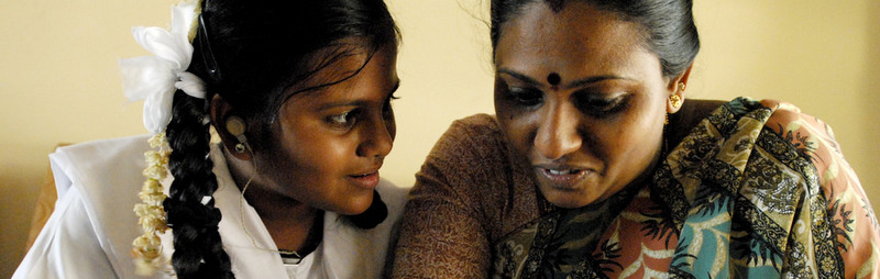 Haritha, a pupil, and her mother look at a map of England in a Chennai classroom, 2009. Credit: dfid/Flickr, CC BY 2.0