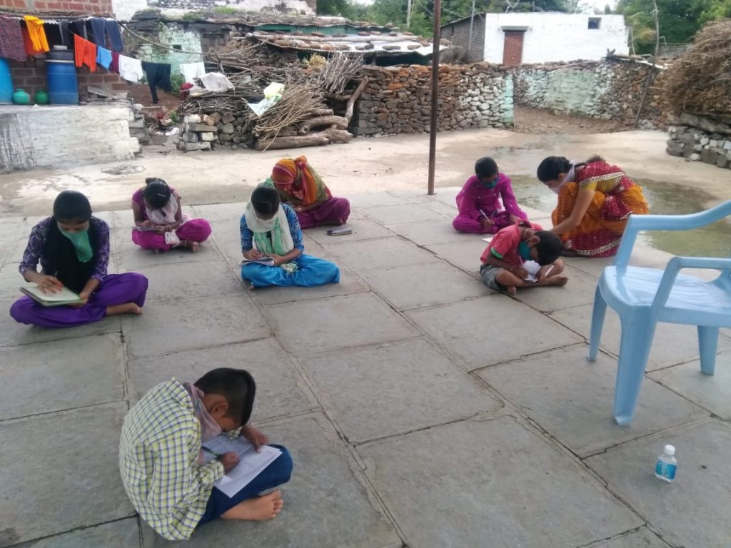 Perhaps the most significant public initiative to support children's education through the pandemic period was conducted in the Kalaburagi Division of Karnataka. It began with some government teachers, a few also part of BGVS, who decided to meet small groups of 15-20 children in safe open spaces, and helped them with learning activities. They planned integrated activities for a mixed age group of 6-16 years, and also supervised the use of the education channel.