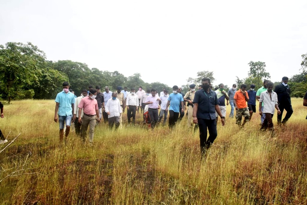 Goa CM Pramod Sawant at the village to discuss the construction of the IIT campus. Photo: Twitter/@DrPramodPSawant