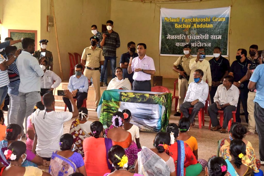 Goa CM Pramod Sawant spoke with villagers at the Shel-Melauli village regarding their grievances about the IIT Goa Campus, in October 2020. Photo: Twitter/@DrPramodPSawant