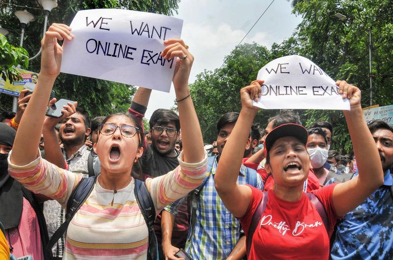 “The students protesting offline exams had demanded either the reduction of the syllabus, or the completion of the syllabus with in-person classes, or online exams. If the institutions did not teach us certain topics, why should they expect us to learn them on our own for exams?” asked Darpan Mukherjee, a third year law student at Bankura University.