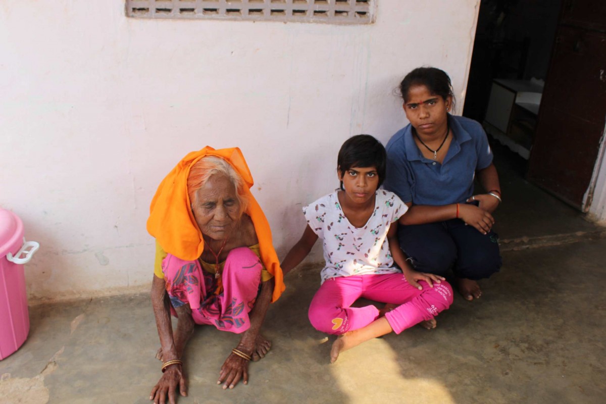 Divyanshu's aunt Sanu with his grandmother and younger sister. Photo: Shruti Jain