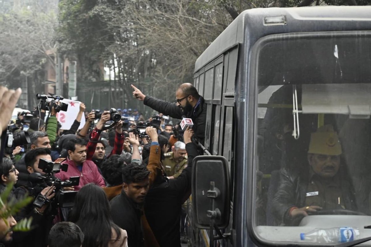 Delhi Police detaining student activists at Jamia before the documentary screening. Photo: Twitter/@Dr_SQRIlyas