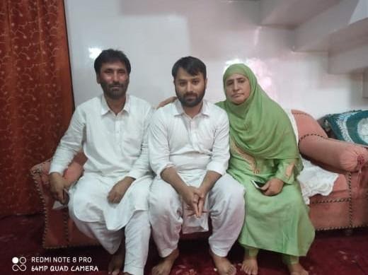 Asif Yousuf Tantray with his parents. Photo: Special arrangement