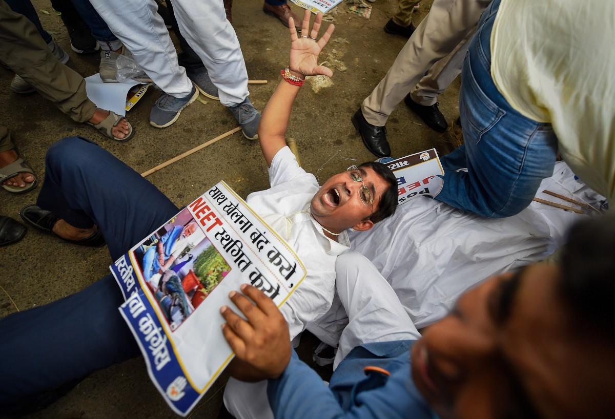 Danish Khan, a NEET aspirant from Bihar’s Bhagalpur, said, “I am in favour of postponing all the exams in the country right now because of the health crisis. We are peacefully protesting today by wearing black bands and by going on a hunger strike. The NDA government seems not to care about us. Had they postponed the exams, we would have been sitting and revising instead of protesting.”