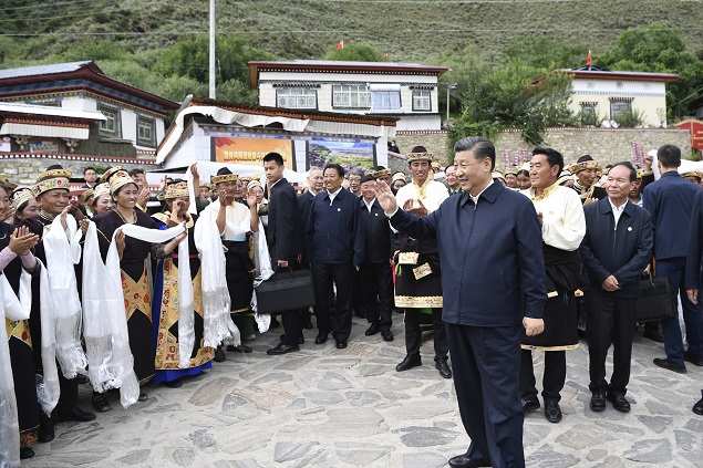 In this photo released by Xinhua News Agency, Chinese President Xi Jinping, visits the Drepung Monastery located in the western suburbs of Lhasa, southwestern China's Tibet Autonomous Region on Thursday, July 22, 2021. Photo: Reuters