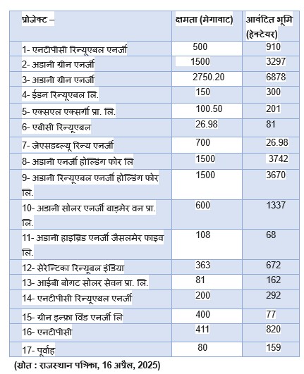 The primary issue is the allocation of land. Based on the documents submitted to the assembly, over the past few years, 157,343 bigha of land (approximately 97,526.5 acres) have been allocated to different companies for solar power plants across Rajasthan.