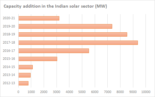 Close to six years later, India is nowhere near that target. By November 2020, the country’s installed solar capacity stood at 36.9 GW. Compounding matters, a clutch of marquee investors like SoftBank have exited, investment into the sector is falling, as is the rate at which India adds fresh solar capacity.