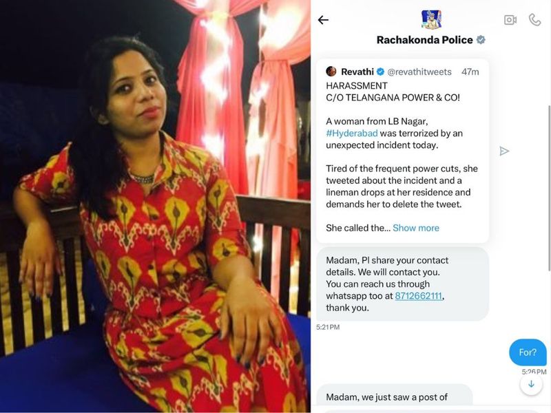 On July 18, Revathi Pogadadanda had made a post alleging that a woman from L.B. Nagar in Hyderabad had been intimidated into deleting her post about her experiences during a disruption in power supply.