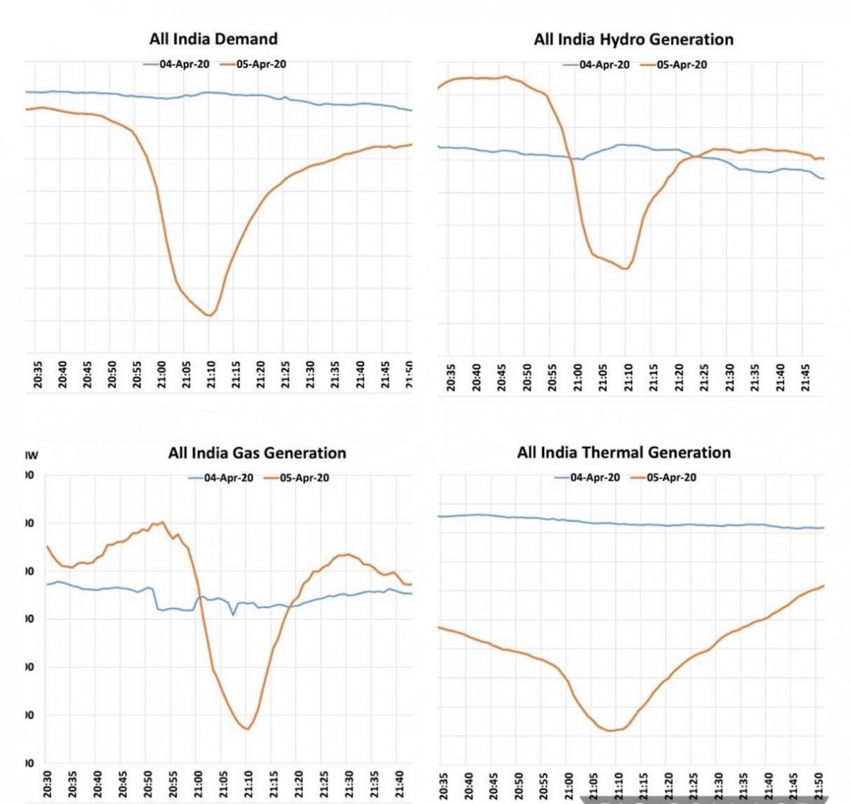 The Ministry of Power and India's system operator installed protocols to handle rapid changes in electricity demand that the switch-off would create. They predicted a fall in demand of around 12-14 GW for a 2-4-minute period when the lights would go off, with recovery just a few minutes later. In the actual event, total reduction in demand was 31 GW (2.5-times the anticipated demand reduction), with minimum recorded demand of 85.8 GW at 9:10 pm.