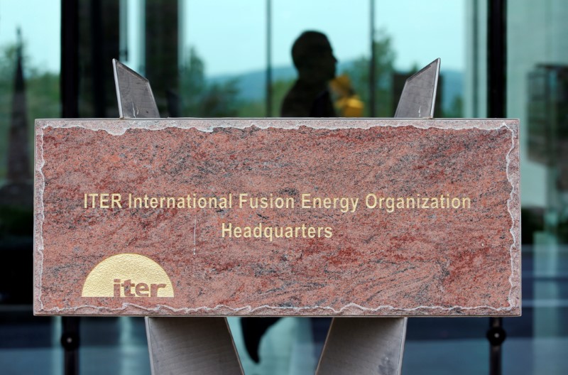 A man walks past a block of stone with the name of the International Thermonuclear Experimental Reactor (ITER) organisation headquarters in Saint-Paul-lez-Durance, Southern France, October 6, 2016. Credit: Reuters/Jean-Paul Pelissier/Files
