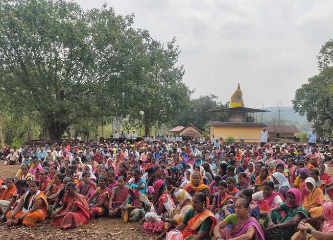 Locals protest at Barsu Solgaon of the Rajapur block in Ratnagiri. Photo: Twitter@aviuv