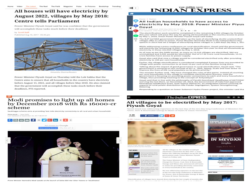 In his speech, Modi gave his government a pat on the back when it came to implementation of electrification programmes. It is important to examine this. Let's start with some interesting comments made by a senior minister in this government regarding the numbers and the success of the DDUGJY. Then power minister Piyush Goyal made these three interesting statements on three different occasions in two years and Modi has a different version all together. See the screenshots below.