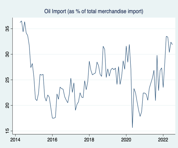 This growing demand for energy has also been observed in the composition of merchandise imports between the same period, with imports of oil products nearly doubling in value from Rs 78,281 crore in April 2014 to Rs 1,68,226 crore in July 2022.