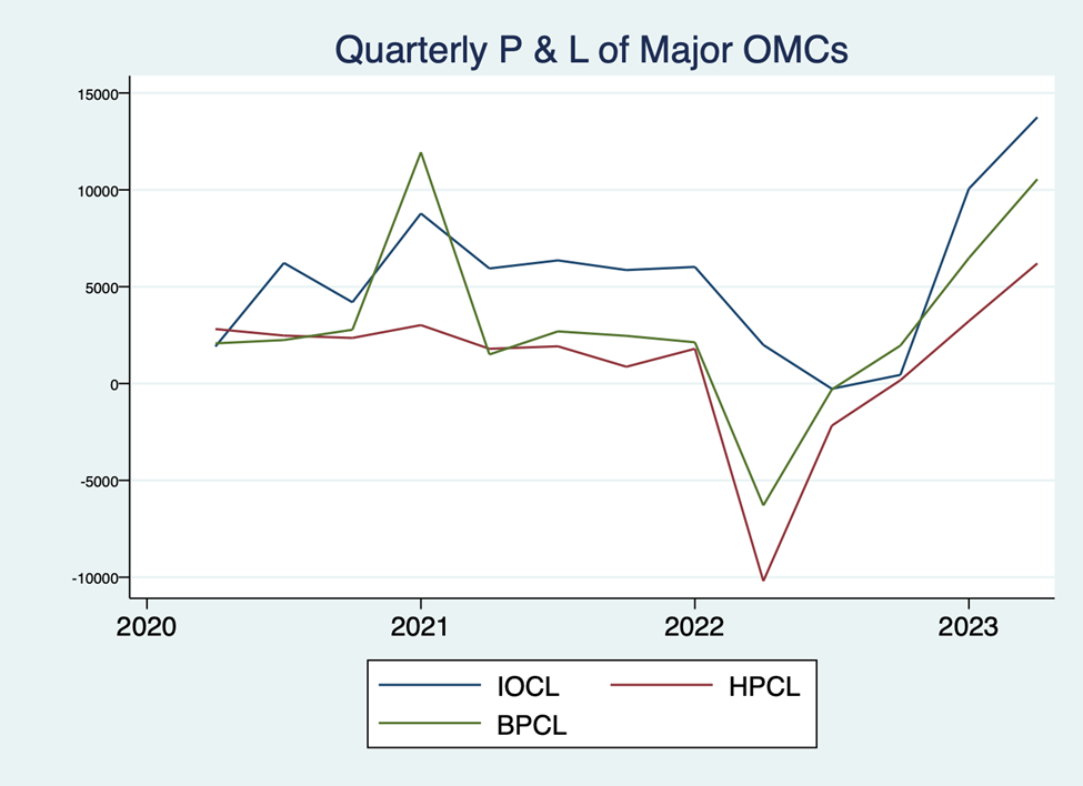 After a brief stint of market-determined prices, the OMCs have taken up the mantle since 2014 to revise the fuel rates daily, by considering the crude oil prices in the international markets and the rupee-dollar exchange rate. As prices surged during the height of the COVID-19 years, profits experienced by these companies also experienced a spike, only coming to a halt when a price freeze was implemented despite rising costs in early 2022.