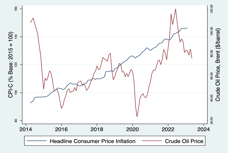 After hitting rock bottom post-2022, companies have recorded profits consistently from thereon. If we look at the relationship between headline inflation and crude oil price, in the figure below, one will see how between 2018 and early 2023, inflation remained high despite a gap in oil prices.