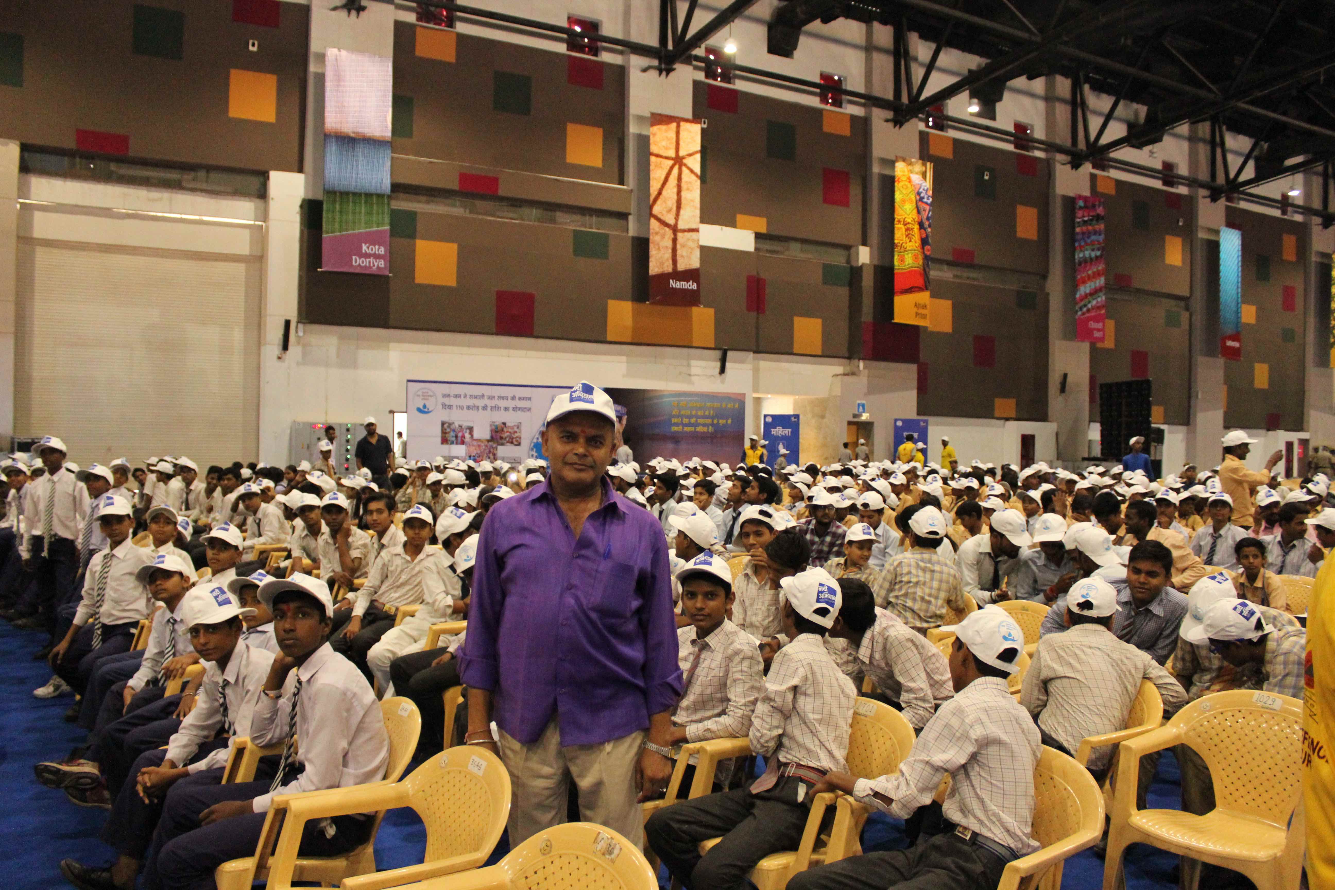 Jagdish, principal of government secondary school, Sanganer with his students at the event. Credit: Shruti Jain.