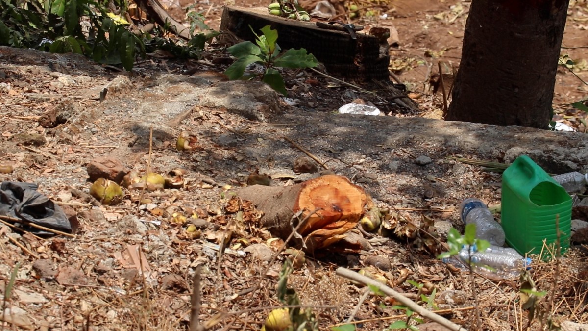 Remains of a mango tree with ripe coconuts that have fallen scattered around. Photo: Zeeshan Kaskar