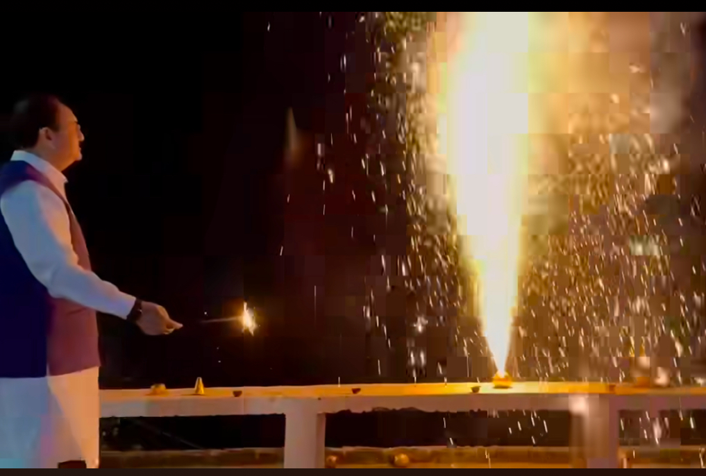 Screengrab from a video of Union health minister J.P. Nadda bursting crackers on Diwali day, October 31, 2024. Photo: JP Nadda's Facebook page