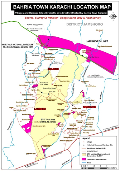 Omer Darwesh, a geographic information system expert, associated with the Sindh Indigenous Alliance, has developed maps to expose Bahria Town and its construction in Kirthar.