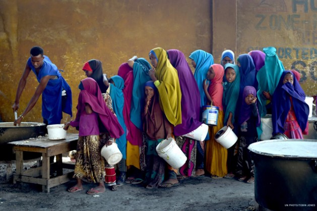Young girls line up at a feeding centre in Mogadishu, Somalia, where a severe drought is threatening famine. Credit: UN instagram