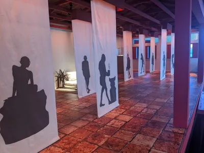At the back of the pavilion, the contingent has attempted to recreate the Sabarmati Ashram with a red floor, white curtains, and silhouettes depicting Gandhi using a broom, washing the floor, watering plants, etc. There are also models of Gandhi's iconic spinning wheel, or the charkha, of different sizes. (This rustic image stands in stark contrast to the government's plan to make the original ashram in Ahmedabad "world-class", and the implications have left its residents troubled.) A member of the delegation used one charkha during the opening ceremony to spin "sustainable yarn" – as if to suggest the world needs to adopt Gandhi's model of sustainable living and cut consumption.