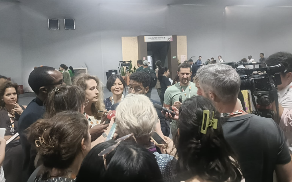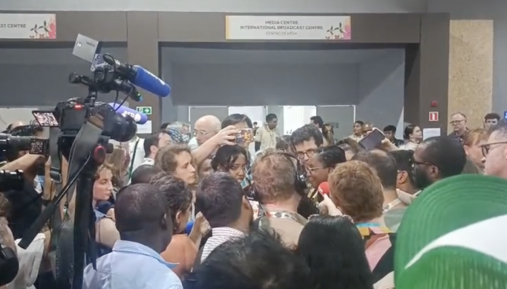 At 2 pm, several ministerial-level country representatives come together to form the ‘Mutirão Call for a Fossil Fuel Roadmap.’ ‘Mutirão’ means ‘joint effort’ and the call has people’s interests piqued. By now, everything is everywhere and also all at once. Many journalists troop into the press conference room panting.