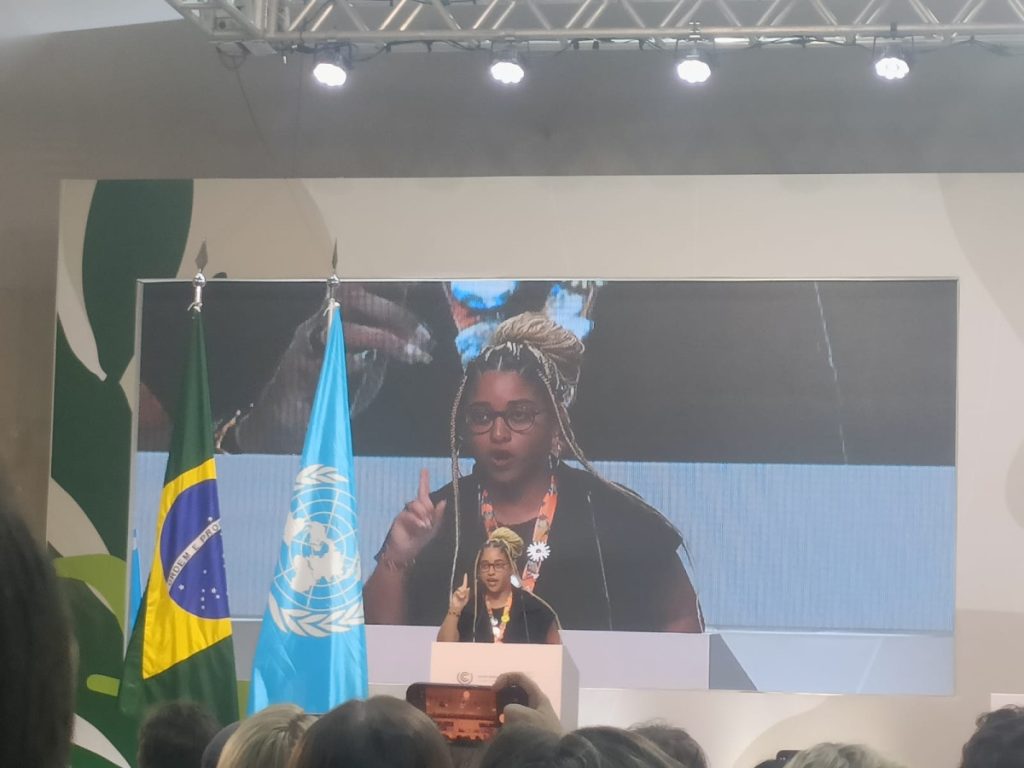 Marcele Oliveira at the ‘Mutirão Call for a Fossil Fuel Roadmap' press conference at COP30 on November 18. Photo: The Wire.. Photo: The Wire.
