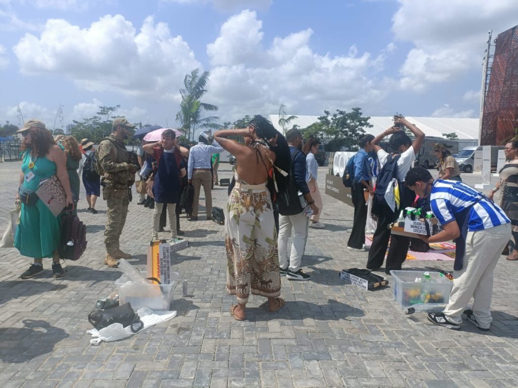 There is a light pitter-patter of keyboards. The pop of cans of free water – refrigerated and ‘COP30’ branded – punctuate the whirr of the enormous wind blowers. It is cool and you struggle to remember the oppressive sun outside.