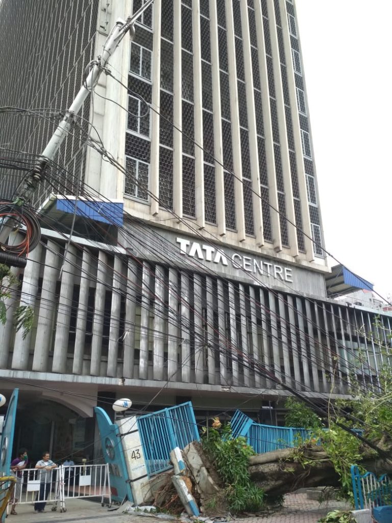 Move a little further from Park Street, one can find the iconic Tata Centre. We spotted a big tree uprooted in front of the main gate of one of Kolkata’s oldest highrises.