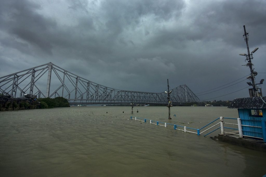A view of the Howrah bridge and a swollen Hooghly river, triggered by cyclone Yaas, in Howrah, May 26, 2021. Photo: PTI